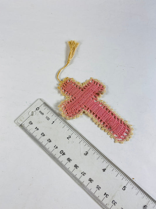 Vintage handmade pink cross bookmark Crochet knitted or macrame religious bookmark unique Christian bible gift! Jesus