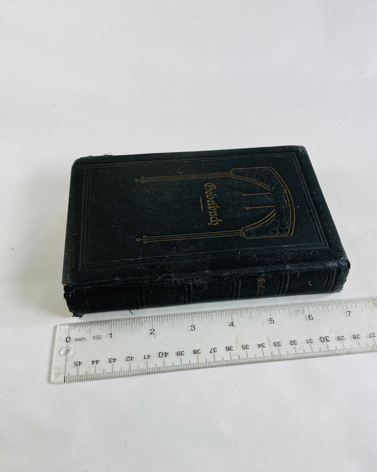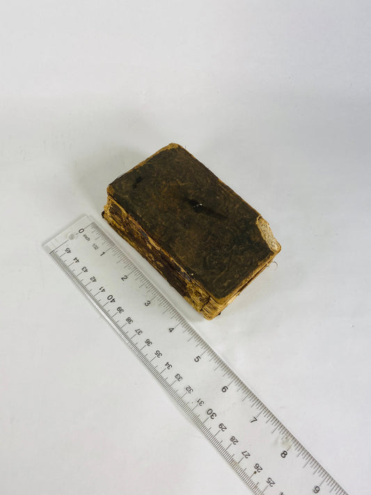 1866 German New Testament Holy Bible with worn leather cover in poor condition. Antique small miniature Christian book. Christmas stocking