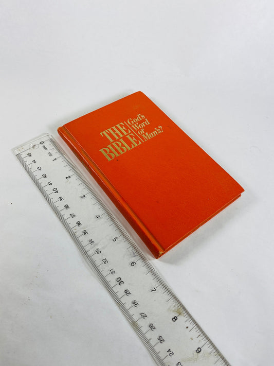 Bible vintage book God's Word or Man's small orange hardback book circa 1989 Provides textual content for studying the Scripture's subjects.