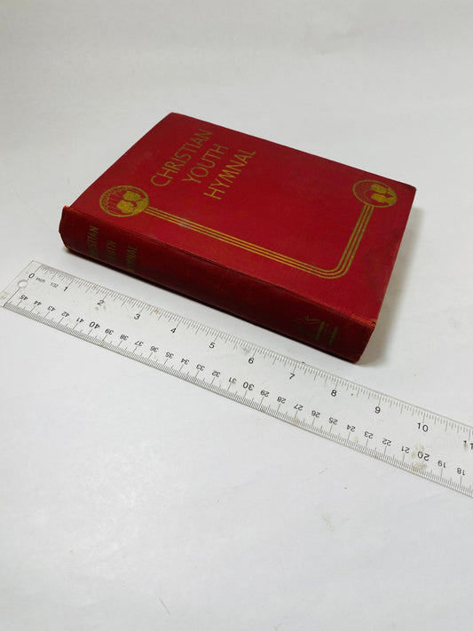 Vintage early revival songbook circa 1948 Church School hymnal by Muhlenberg Christian music book red home decor prop