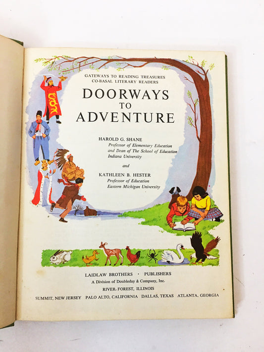 1966 vintage textbook Doorways To Adventure Early Reader Laidlaw Brothers Lime Cream green bookshelf decor gift Children's learn to read