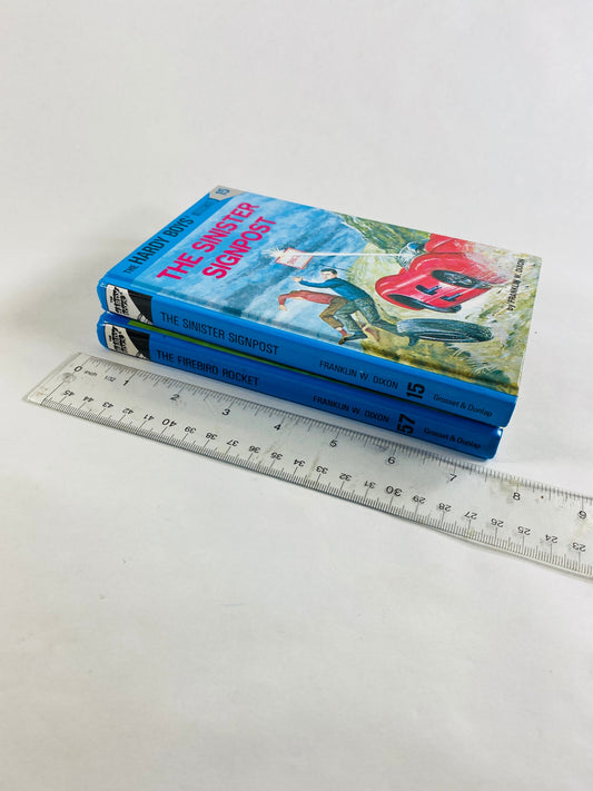 Hardy Boys vintage books by Franklin Dixon Glossy Flashlight Picture cover books. Blue tween teen mystery series home reading