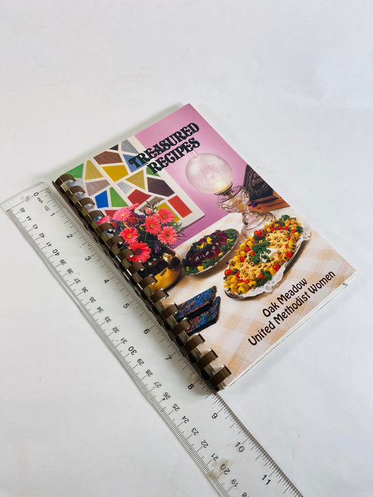 Treasured Recipes vintage cookbook by the Oak Meadow United Methodist Women circa 1993. Methodist stew, bavarian beef, chicken mousse