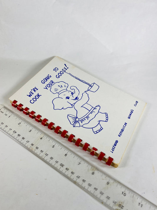 1966 Lakewood Church Republican Women’s Club FIRST EDITION vintage cookbook Cook your Goose Houston Texas