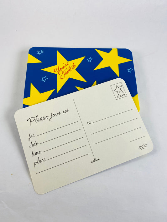1980s Vintage party invitation postcard invitation blue & yellow stars unused Simply affix a stamp and send it in the mail! lot