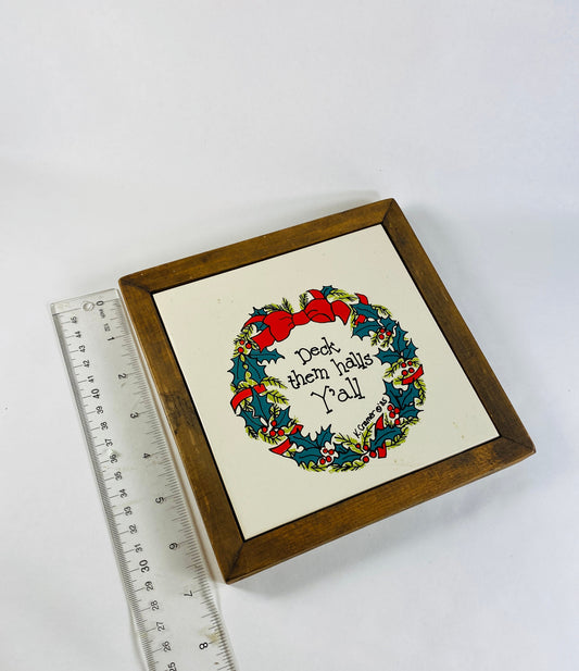 Retro Texas Christmas Deck them halls, Y'all home decor wreath art circa 1985 Perfect for hanging or on counter 7" x 7"