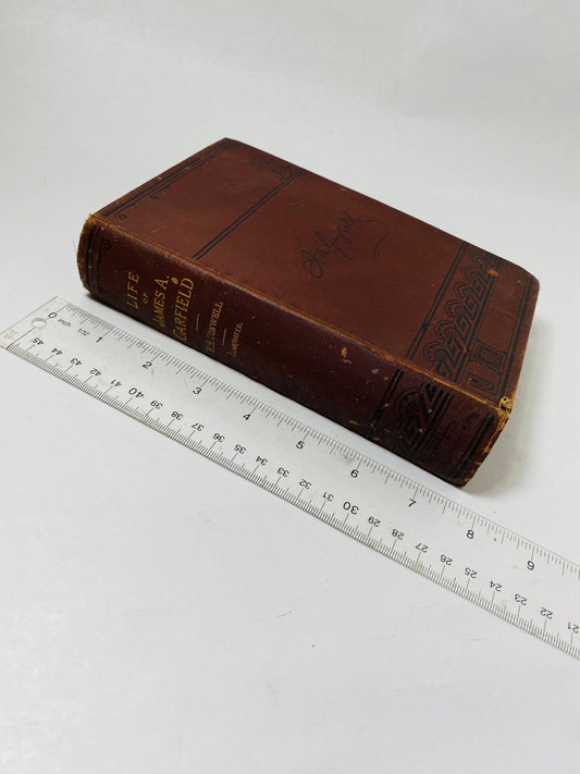 1885 Vintage brown with gold leaf poetry book of Life of James Garfield Thomas Y. Crowell & Company. President America history politics