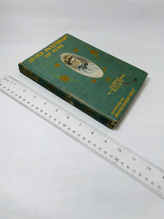 1902 An Old Sweetheart of Mine vintage romantic poetry book by James Whitcomb Riley Antique honeydew green cabin home decor Stocking Stuffer