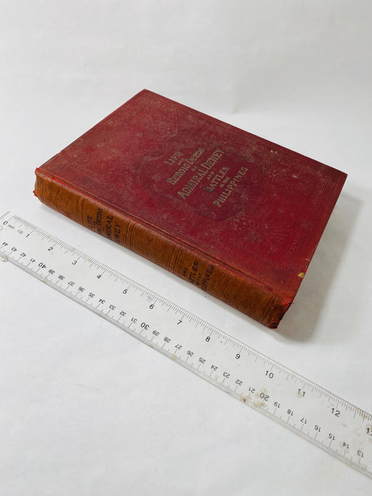 1899 Heroic Deeds of Admiral Dewey Battle in the Philippines Vintage book with gilded red boards antique military history collectible