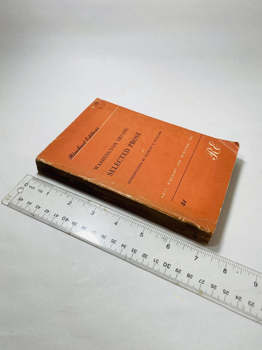 Washington Irving Vintage paperback book circa 1961 Selected Prose Holt Rinehart and Winston home bookshelf decor.