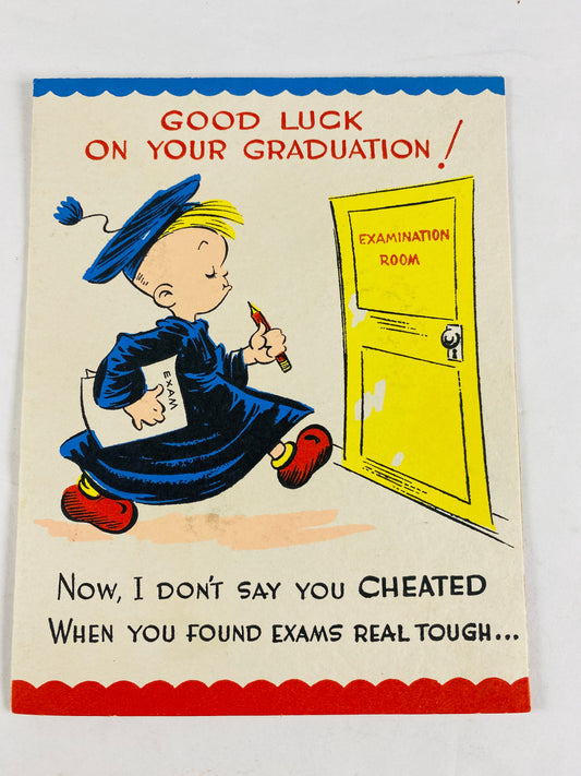 1950 Barker Cards vintage Graduation congratulations card UNUSED featuring graduate who wrote notes up his sleeve Greeting nostalgia
