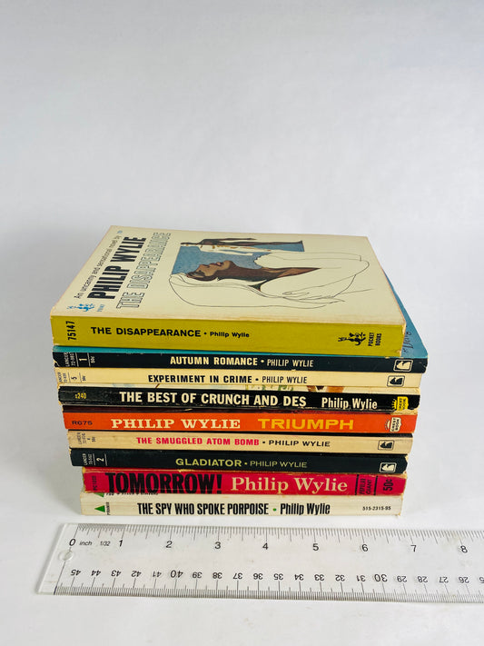 Philip Wylie FIRST & EARLY printing vintage paperback books circa 1950s and 60s Smuggled Atom Bomb, Spy Who Spoke, Triumph, Disappearance