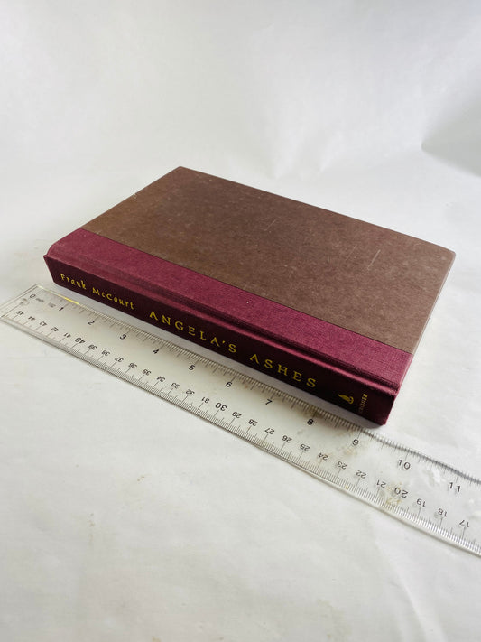 Angela’s Ashes vintage book by Frank McCourt circa 1996, Irish author of Tis. Brown & burgundy bookshelf decor.