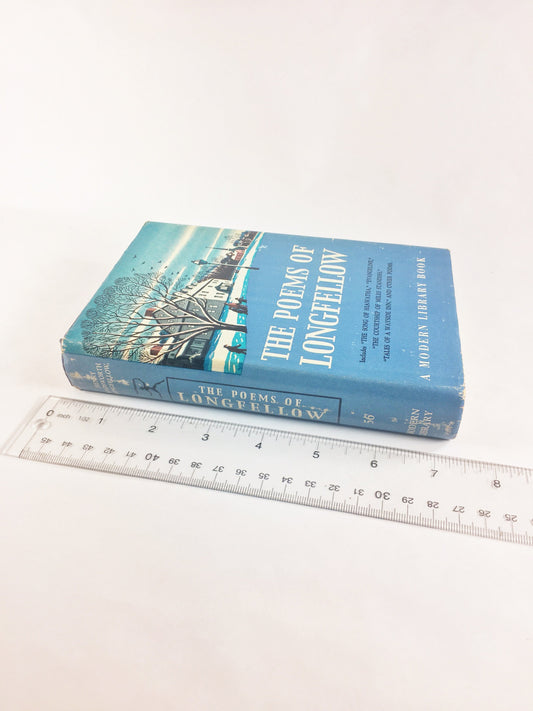 1950 Henry Wadsworth Longfellow Modern Library book of poetry Evangeline Blue home office bookshelf decor. Father's Day gift