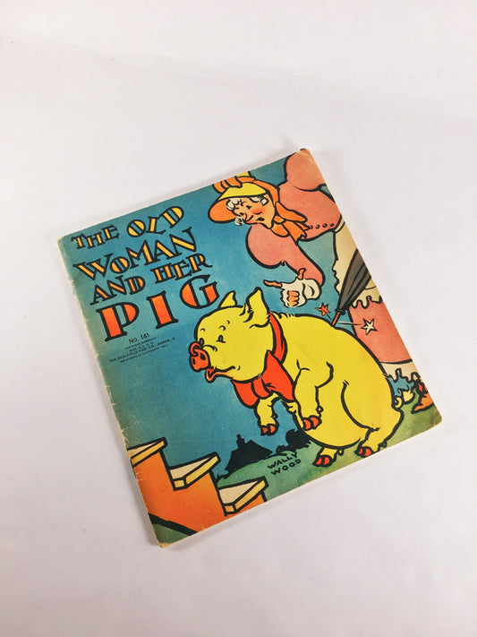 1942 Saalfield vintage War-Time Book Three Little Pigs, Toymaker, Three Bears, Old Woman & Pig, Maze of Months, Toymaker Things to Do Tiger