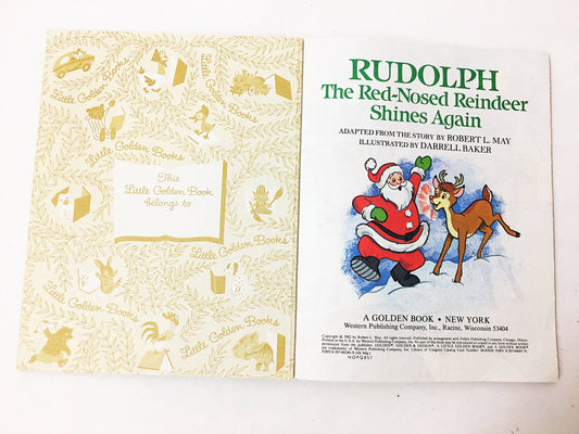 Rudolph the Red-Nosed Reindeer Shines Again vintage Little Golden Book circa 1982. Children's stocking stuffer Santa Frosty. Darrell Baker