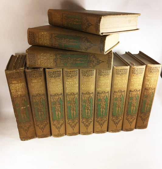 ANTIQUE Young Folks Library for Boys & Girls circa 1909. Vintage children's books Nursery decor gift. Junior Classics.