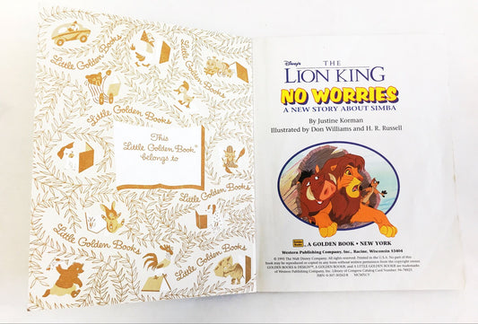 Disney's The Lion King. No Worries. A Story About Simba. Little Golden Book circa 1995. 107-97. Walt Disney. Vintage children's book.