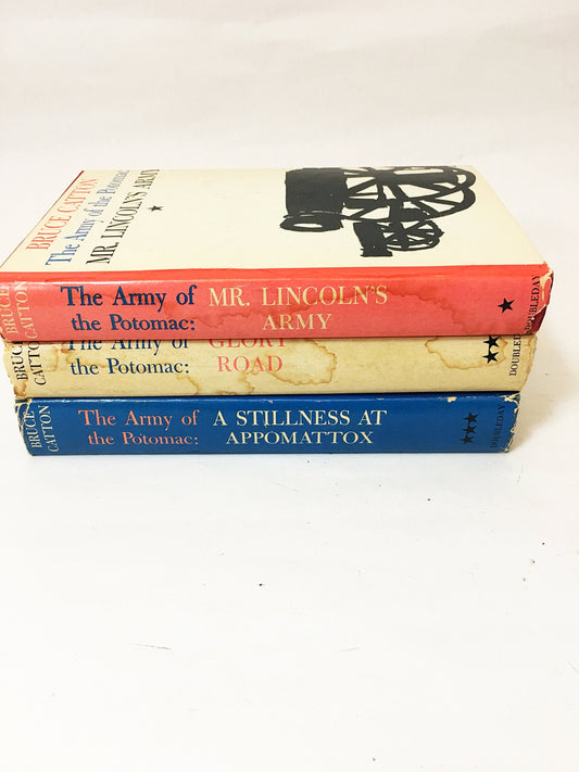 1953 Catton Army of the Potomac 3 volume vintage book set Mr. Lincoln's Army; Glory Road; Stillness at Appomattox. Prop staging home decor