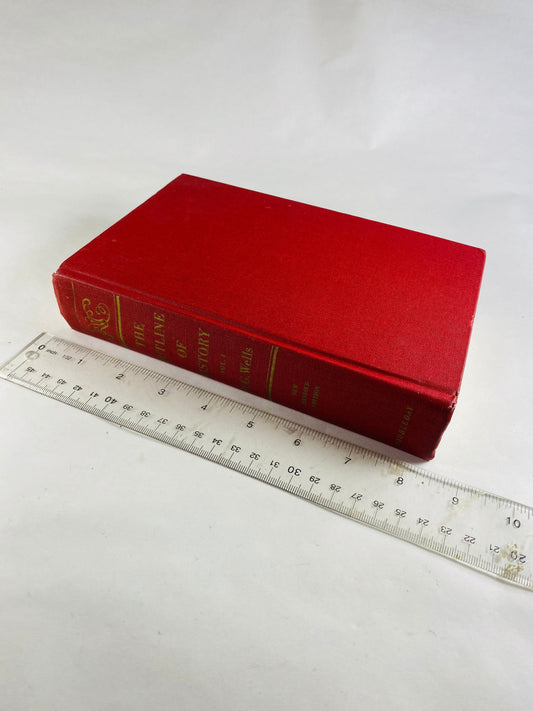 1971 Outline of History by HG Wells Vintage red book Being a Plain History of Life and Mankind volume 1 Whole Story of Man Home office decor