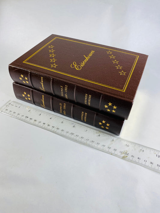 Stephen Ambrose vintage Easton Press Eisenhower book set circa 1987 US President GORGEOUS brown leather, gold History Father's Day gift