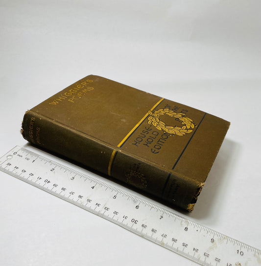 1888 Antique 19th century Whittier poetry book Houghton Mifflin edition with GORGEOUS bindings & gold embellishments. Home decor staging