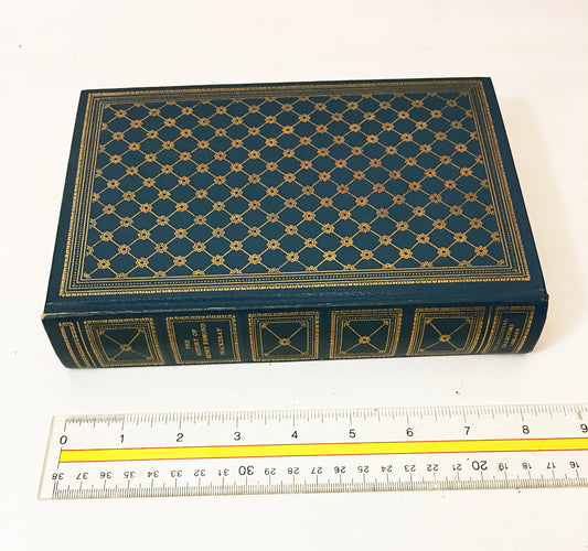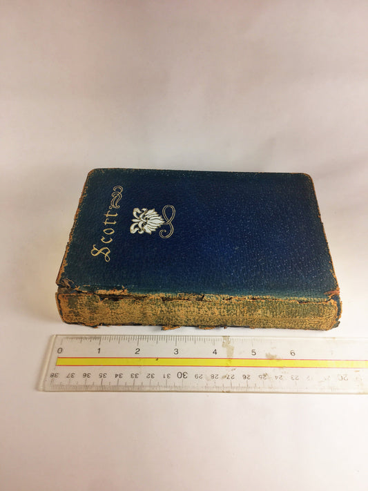1850 Poetical Works of Sir Walter Scott Vintage blue leather book gilt tooling marbled end papers. Antique home office decor