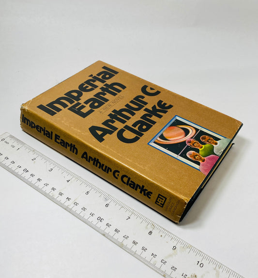 Imperial Earth by Arthur C Clarke FIRST Edition vintage book circa 1976 science fiction Scifi gift gold decor.