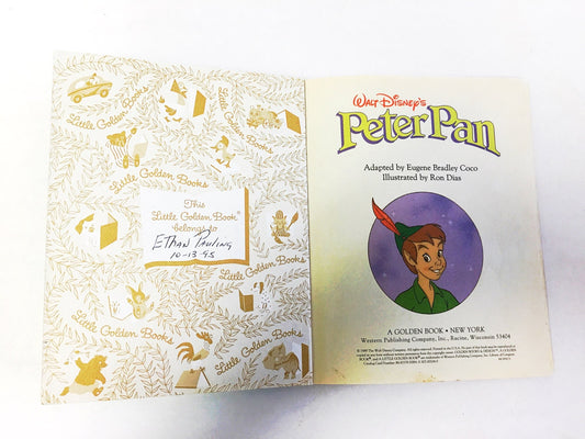 1989 Peter Pan Walt Disney Little Golden Book. Children's at home reading. Elementary school toddler learn to read.