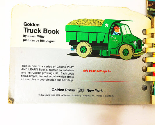 Golden Truck Book. Susan Witty and Bill Dugan. Play and Learn Golden Book circa 1969. Unmarked pages. Little Golden Book. Vintage