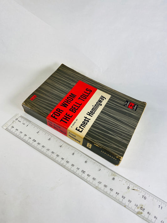 For Whom the Bell Tolls by Ernest Hemingway Vintage Scribner's Library paperback book circa 1940 Grey home office decor. Father's Day gift