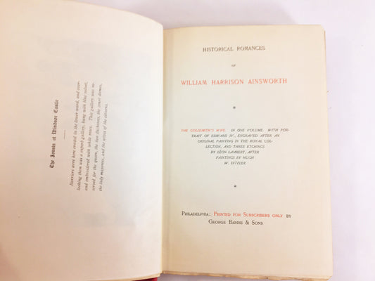 1841 Historical Romances of William Harrison Ainsworth Vintage book Jane Shore, King Edward IV mistress GORGEOUS antique red cloth
